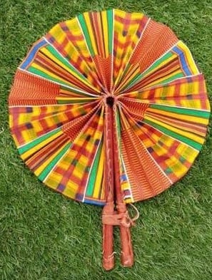 African Kente Print Hand Held Fan Colourful Fabric Unisex Men's Women's African Patterned Fan.